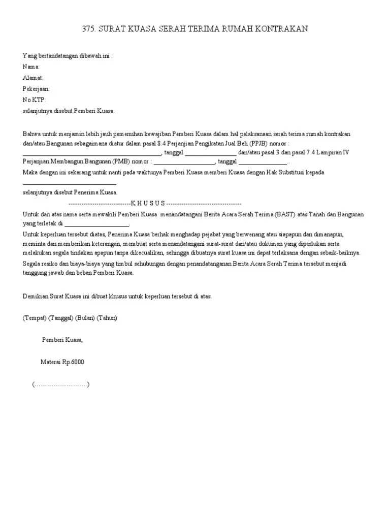 Contoh surat kuasa serah terima rumah picture posted ang submitted by admin that preserved in our collection. Berita acara serah terima rumah adalah surat tertulis yang berisi penerimaan hasil pekerjaan yang didokumentasikan dalam suatu pernyataan. Contoh surat kuasa serah terima surat kuasa ini digunakan untuk mewakili pemberi kuasa untuk bertindak atas nama dan atas kepentingan . Contoh surat kuasa serah terima kunci rumah. Surat rasmi serah tugas rasmi v.