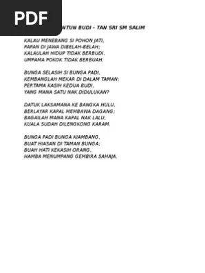 Sm salim feat peter chong pantun budi lyrics musixmatch . Pantun budi song lyrics and music by tan sri sm salim arranged by miznur on. 15 disember 2020 jam 4:40 pg · 731. Discover short videos related to lirik pantun budak dusun on tiktok. Request chord services , organizes chords collection.